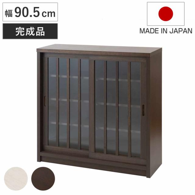 カウンター下収納 幅90.5cm ガラス引き戸 和モダン調 日本製 完成品 ( カウンター下 天然木 桐 リビング キッチン収納 収納棚 食器棚 キャビネット 収納 棚 ラック 家具 木製 可動棚 ホワイトブラウン シンプル )