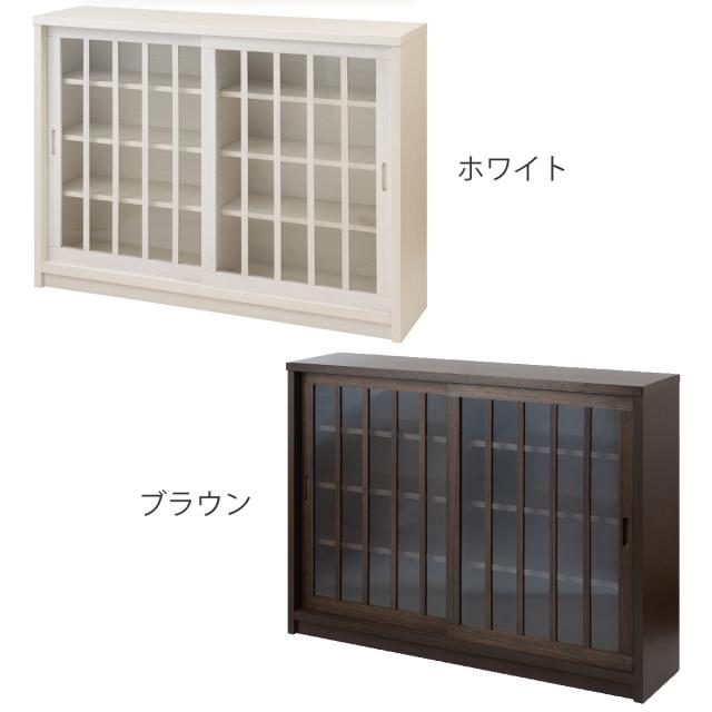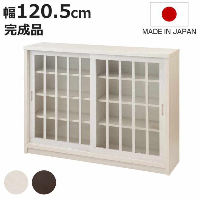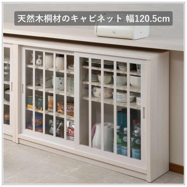 カウンター下収納 幅120.5cm ガラス引き戸 和モダン調 日本製 完成品 ( カウンター下 天然木 桐 リビング キッチン収納 収納棚 食器棚 キャビネット 収納 棚 ラック 家具 木製 可動棚 ホワイトブラウン シンプル )