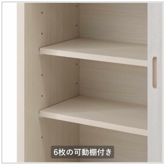 左右合わせて合計6枚の可動棚が付いているので、収納する物の高さに合わせて棚板の位置を変えることができます。