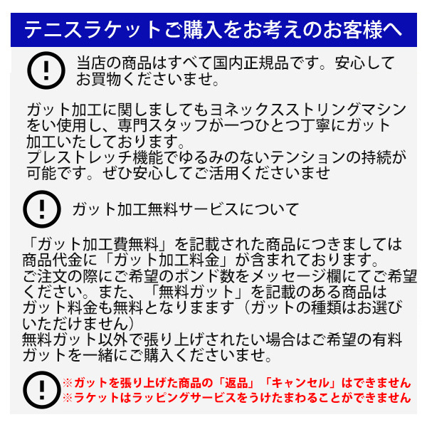 ラケット等加工済みの商品は返品はお受けできません。あらかじめご了承くださいませ。