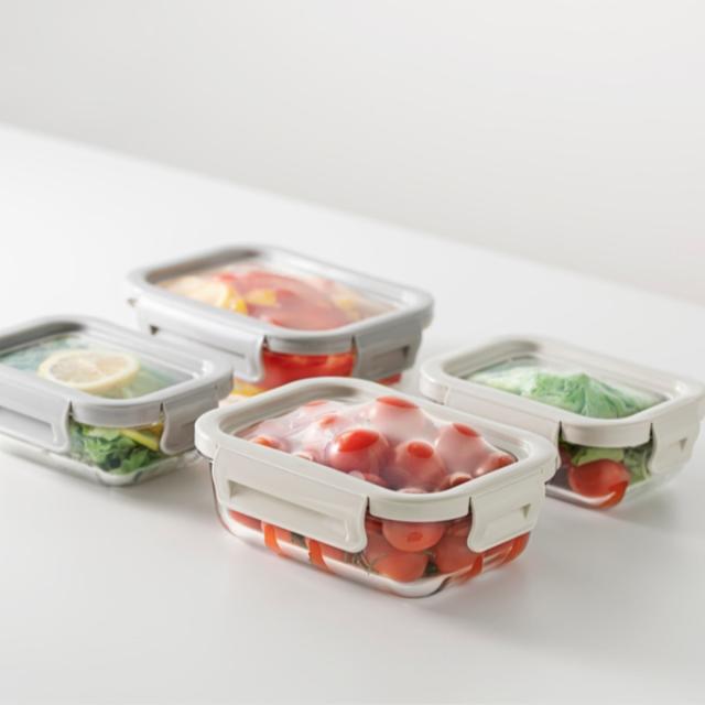酸や塩分に強く、食べ物のにおい移りや色移りの少ないガラス製の容器は、いろいろな食材を気にせず保存できます。透明なので中身が確認しやすく便利です。また汚れも落ちやすく、洗い物が楽で気軽に使えます。
