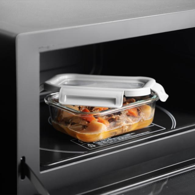 蓋のロックを外してずらしておけば、電子レンジも使用可能です。作り置きしたおかずを温め直すのに便利です。