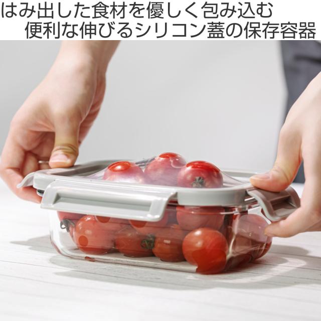 通常の蓋では収まりきらず、あと少しが入らない・・・そんな時に便利な伸びるシリコン蓋の保存容器です。はみ出してしまったお料理を優しく包み込み、しっかり密閉してくれます。