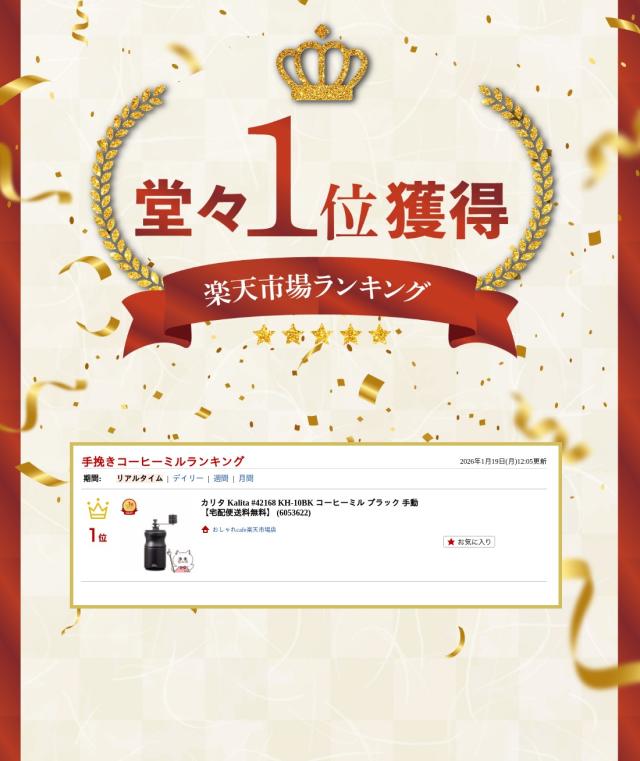 【お買い物ラリー ポイント34%還元】【楽天ランキング1位】カリタ #42168 KH-10BK コーヒーミル ブラック 手動[送料無料] (6053622)