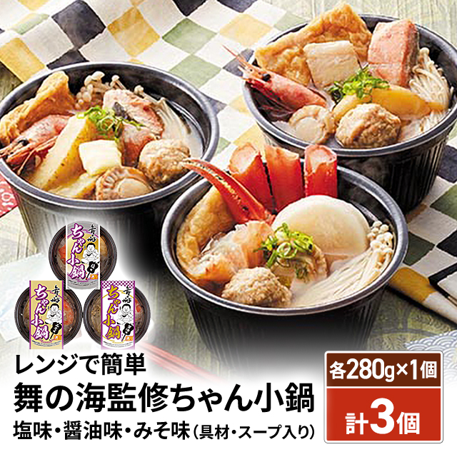 送料込み レンジで簡単 舞の海監修ちゃん小鍋 塩味・醤油味・みそ味 各280g×1個/計3個(具材・スープ入り)SB-300 冷凍 鍋 舞の海 ちゃんこ 冷凍食品 塩 醤油 味噌 セット レンジ お取り寄せ