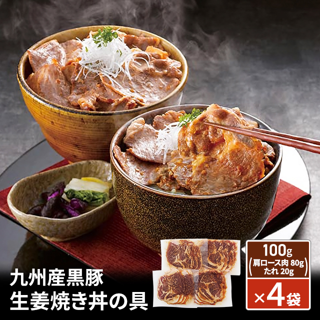 送料込み 九州産黒豚生姜焼き丼の具 100g(肩ロース肉80g・たれ20g)×4袋 SH-350 冷凍 黒豚 生姜焼き 惣菜 お取り寄せ 冷凍食品