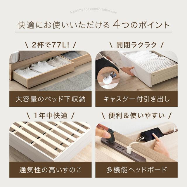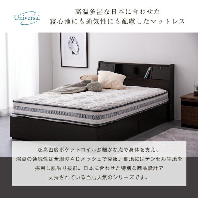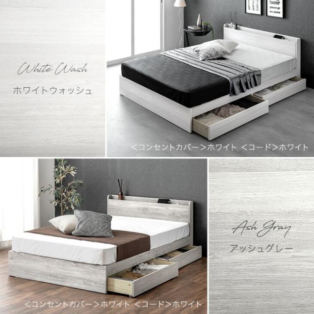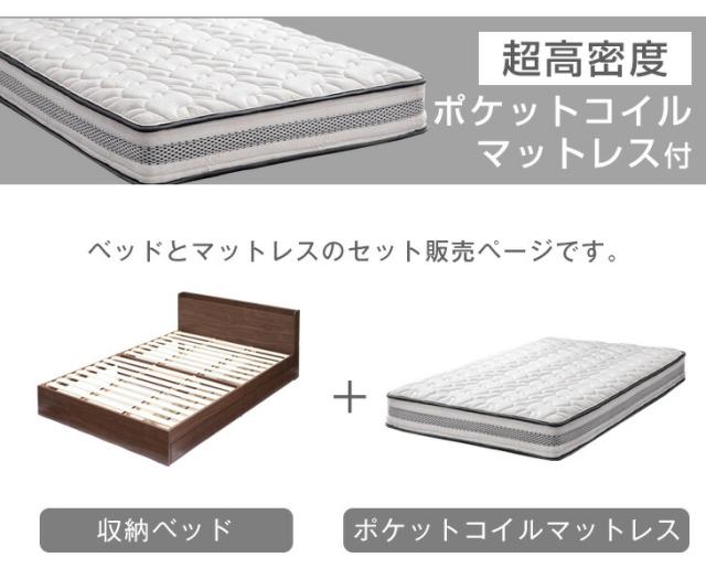 ベッド マットレス付き ダブル 収納 スマホスタンド USB コンセント付き 収納付きベッド フレーム ベッドフレーム 4Dメッシュ ポケットコイルマットレス スプリングマットレス 宮棚 USBポート ダブルベッド