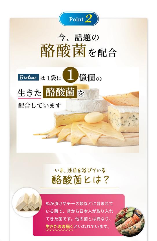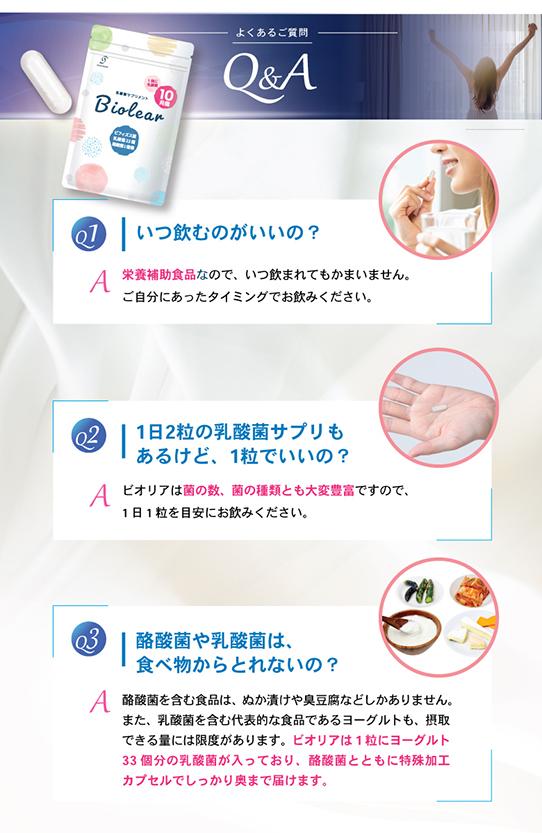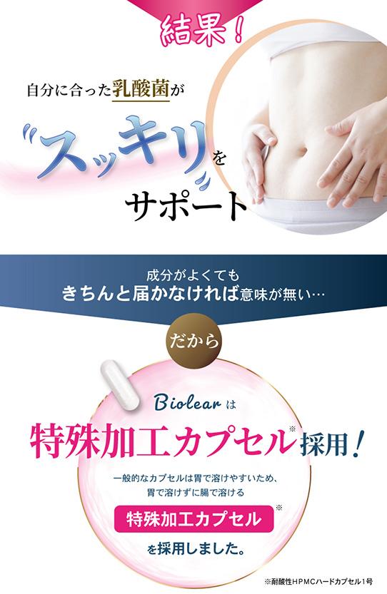 Biolearは打錠でもソフトカプセルでもなく耐酸性カプセルを採用しています。大切な菌たちをしっかりと腸まで届けます。
