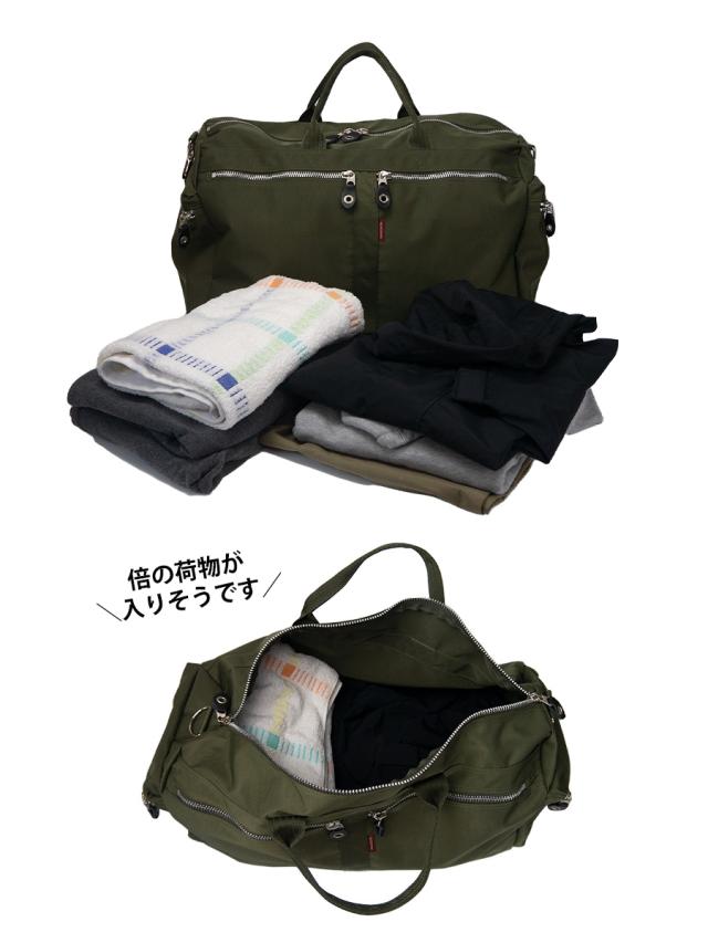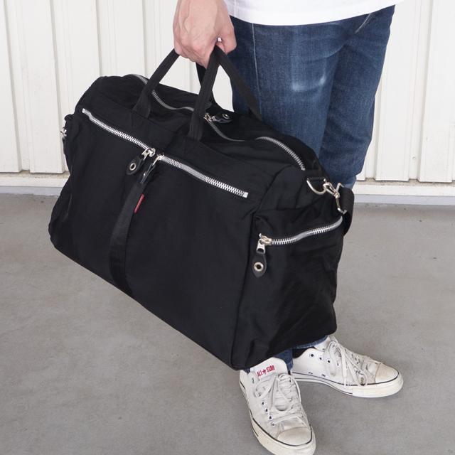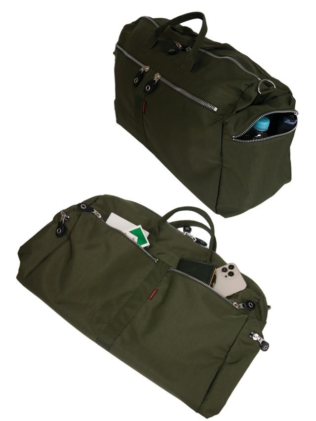 ■自然なしわの風合いを出したワッシャー加工を施したナイロンに、ごっつめのYKKファスナーを使ったポケットをポイントにしたボストンバッグです。柔らかく荷物の量にあわせくれる素材感なので収納力があります。