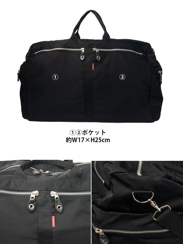 ■自然なしわの風合いを出したワッシャー加工を施したナイロンに、ごっつめのYKKファスナーを使ったポケットをポイントにしたボストンバッグです。柔らかく荷物の量にあわせくれる素材感なので収納力があります。 ■約38L 3〜4泊程度対応サイズです。大きなポケットを外装に配置し小物を出し入れしやすく大量に収納することができる木機能的なデザインです。側面のポケットはペットボトルや折り畳み傘が収納できます。 ■ショルダーベルト付き。自然学校・修学旅行・出張・プライベートな旅行までご家族兼用でお使いいただけます。 ■時代の流れを意識したカジュアルラインのデザインとコストパフォーマンスに優れたモノづくりで展開する【MOUSTACHE】の商品です |