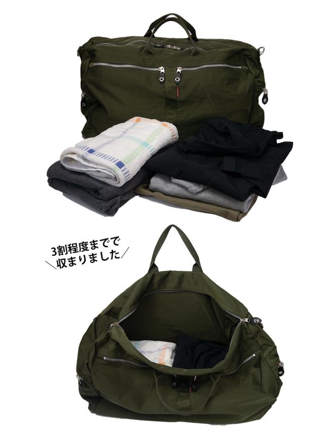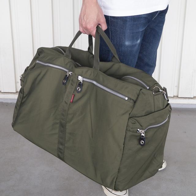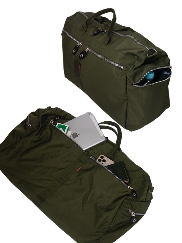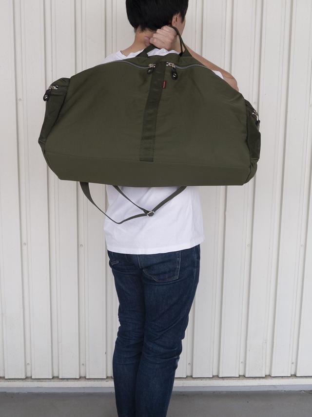 ■自然なしわの風合いを出したワッシャー加工を施したナイロンに、ごっつめのYKKファスナーを使ったポケットをポイントにした特大ボストンバッグです。柔らかく荷物の量にあわせくれる素材感なので収納力があります。