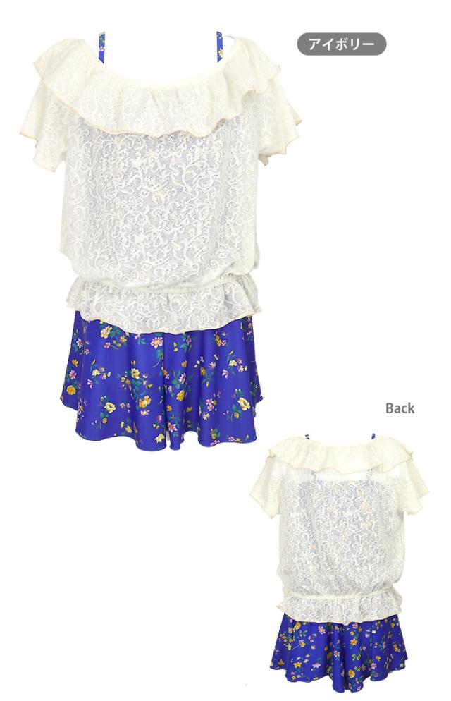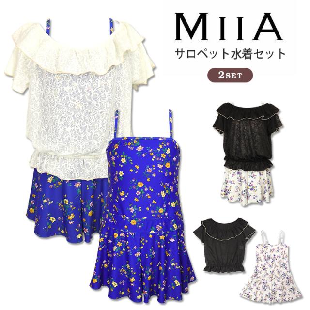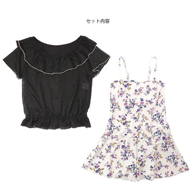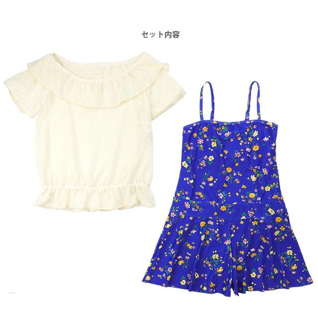 MIIA キッズ・ジュニア女の子用トップス付きサロペット水着2点セット 150cm ミーア ワンピース 33950386 2点セット 女児 No.sw3366