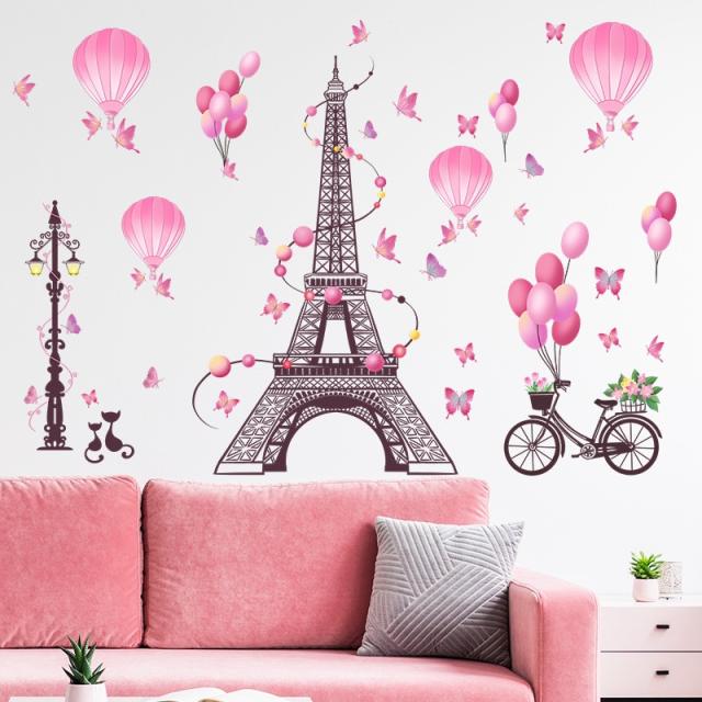 ウォールステッカー ADD038 パリ エッフェル塔 熱気球 癒す DIY 壁紙 インテリアシート 剥がせるシール 送料無料