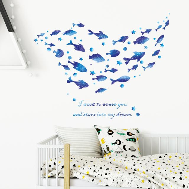ウォールステッカー ADD039 海 魚群れ ブルー 星 癒す DIY 壁紙 インテリアシート 剥がせるシール 送料無料