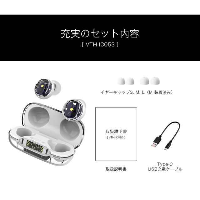 イヤホン Bluetooth ワイヤレス 片耳 iphone android galaxy マイク 透明 クリアデザイン TWS イヤホン VTH-IC053 VERTEX ヴァーテックス