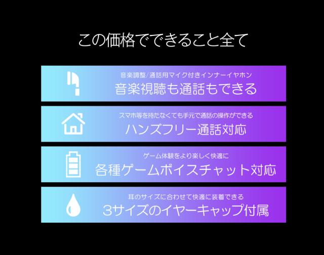 セット内容 :イヤホン、イヤーキャップS/M/L(M は本体に装着済み)、取扱説明書兼保証書