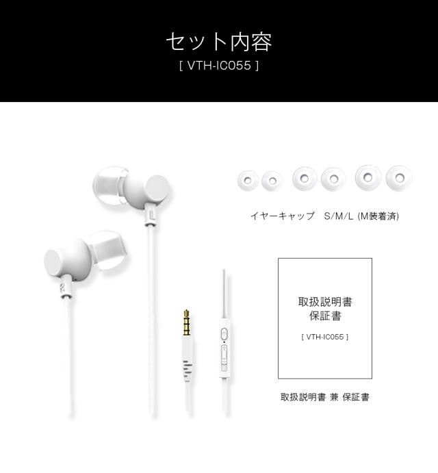 イヤホン 有線 マイク付き カナル型 音量調整 通話用 マイク付き インナーイヤホン VTH-IC055 VERTEX ヴァーテックス