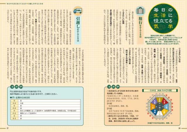 ・日々の吉凶や方位も記載され、大切な行事の日取りの決定をする時に見られたり、