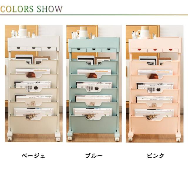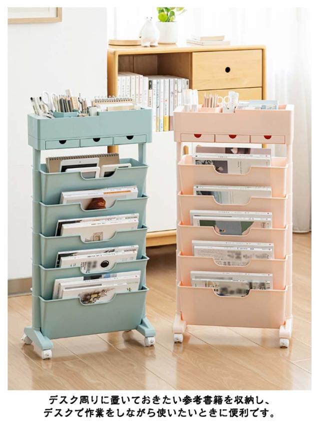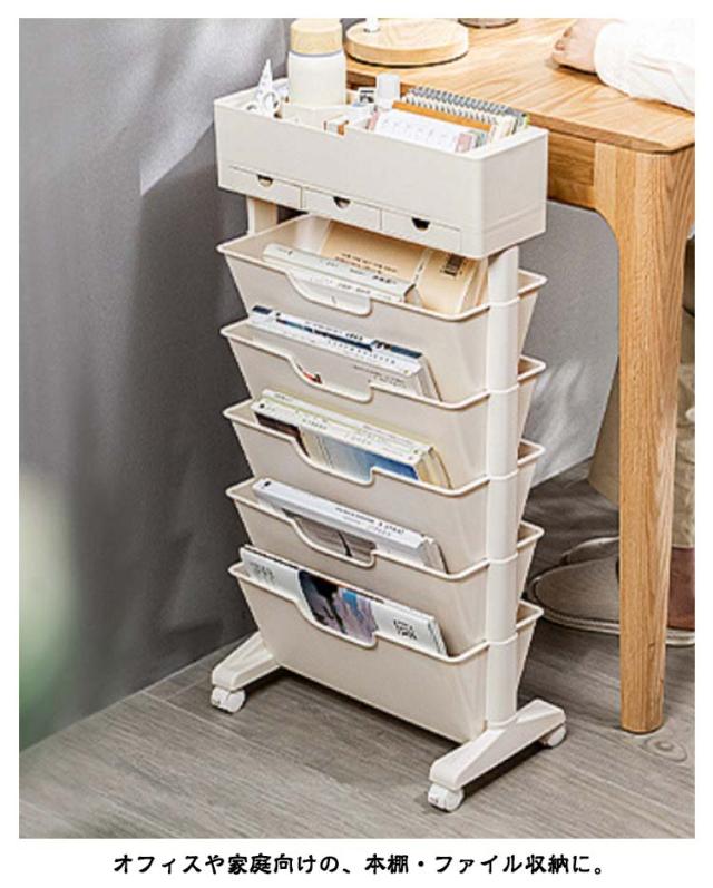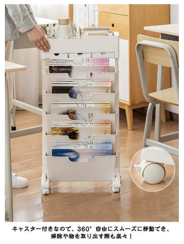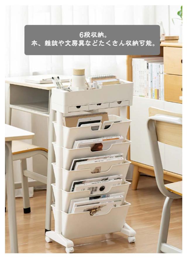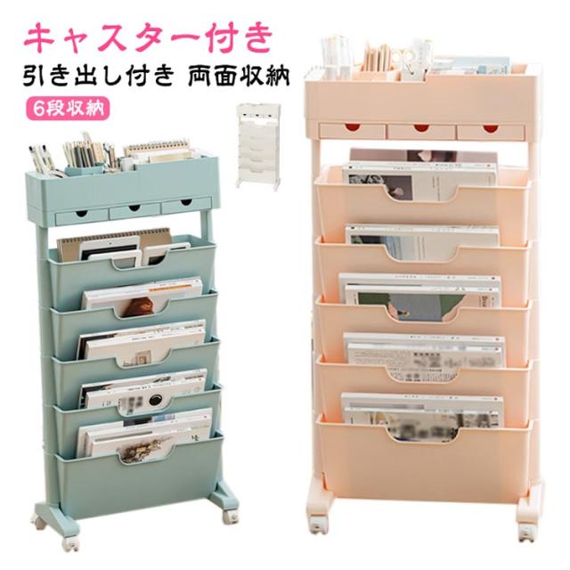 収納ワゴン 両面 ファイルワゴン マガジンラック 6段 ワゴン 引き出し付き 収納ラック マガジンラック マガジンスタンド ファイル収納 6段収納 ワゴン収納 キャスター付き 仕切付き 出し入れしやすい ファイルラック 斜め スリム ファイルスタンド 書類 ブックスタンド
