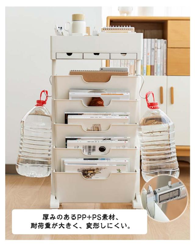 | 【キャスター付き】【6段収納】【両面収納】【引き出し付き】 6段収納。本、雑誌や文房具などたくさん収納可能。 取り出しやすく、整理がカンタンで大変便利。 厚みのあるPP+PS素材、耐荷重が大きく、変形しにくい。 キャスター付きなので、360°自由にスムーズに移動でき、掃除や物を取り出す際も楽々! 棚板が斜めに設計、背表紙が見やすく出し入れもしやすいファイルラック。 オフィスや家庭向けの、本棚・ファイル収納に。 デスク周りに置いておきたい参考書籍を収納し、デスクで作業をしながら使いたいときに便利です。 | |