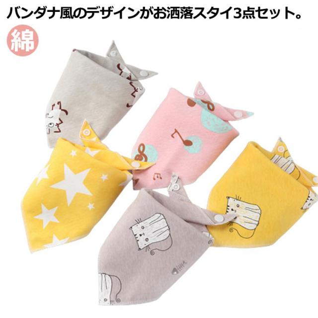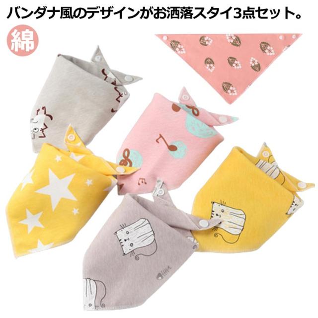 バンダナ 送料無料 ベビースタイ スタイ 三角 ビブ エプロ かわいい ベビー用品 コットン ベビー 綿 よだれかけ よだれ掛け スタイ キッズ 男の子 スナップボタン 3点セット 赤ちゃん お食事 授乳 出産祝い 女の子
