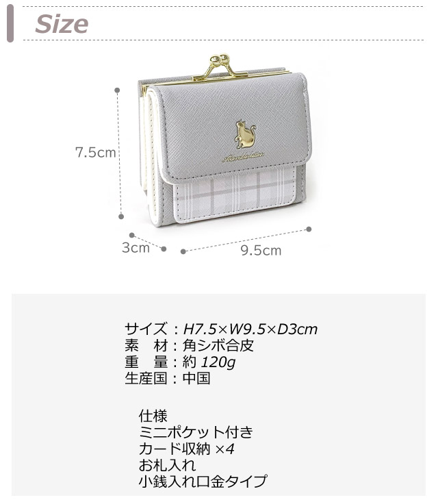 ■イメージ・その他:おしゃれ お洒落 人気 人気 ランキング 可愛い かわいい 使いやすい 大容量 黒 ブラック グレー アイボリー 白 チェック チェック柄 大人っぽい シンプル レディース財布 キッズ財布 3つ折り財布 三つ折り財布 ミニ財布 がま口 ねこ ネコ 猫 ねこグッズ 小さめ ミニ ミニサイズ包装 無料ラッピング ラッピングバッグ