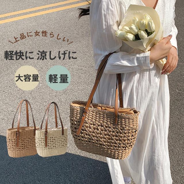 かごバッグ 夏 おしゃれ トートバッグ レディース 軽い 浴衣バッグ サマーバッグ バッグ 女性 ストローバッグ 大容量 軽量 旅