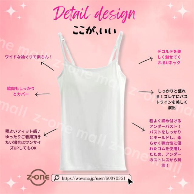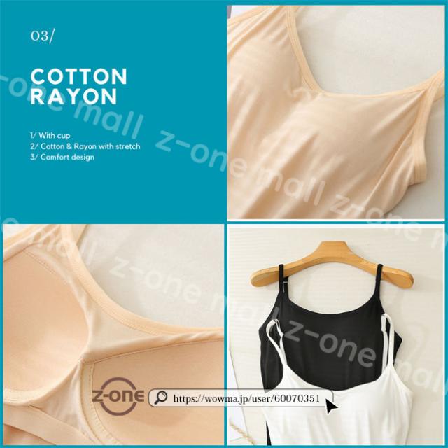メイン素材: 70%コットン、20%ポリエステル、10% ポリウレタン【ラクなのにズレにくい】 バスト部分のしめつけ感を軽減、しかもズレ上がりにくい 【きれいなバストシルエット】 一体型のカップでバストを自然なシルエットにととのえる 【カップ付き&優れたホールド感・安定感】このカップ付きキャミソールは丸みのあるカップで胸をホールドしてバストをしっかりサポートで安定感がよいです。胸パッド付きキャミソール1枚でも着られるインナーを実現致しました。【肩紐調節可&着心地が快適】このブラキャミソールは肩ひも調節可、自分のニーズに応じて最適な長さに調節できます。体にぴったり合って、いつ着ても束縛感じゃない、着心地がもっと快適です。