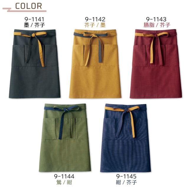 9-1141 住商モンブラン 和の配色でアクセント。イージーケアな前掛けエプロン!