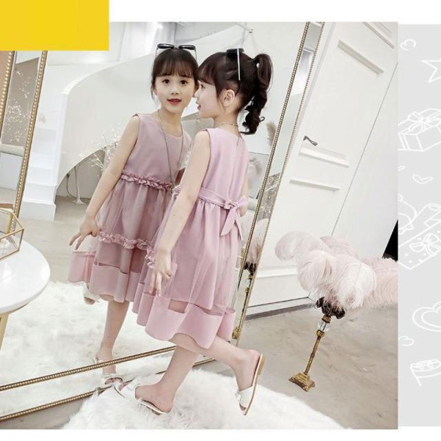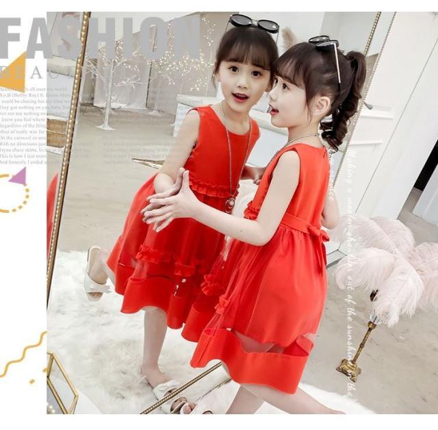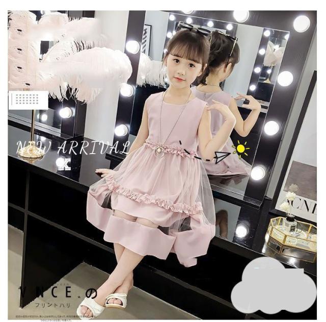韓国 子供服 ノースリーブワンピース チュールワンピース 入学式 子供 ドレス 女の子 レース 可愛い お洒落 膝丈 Aライン 110 120 130 140 150 160