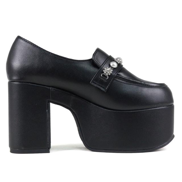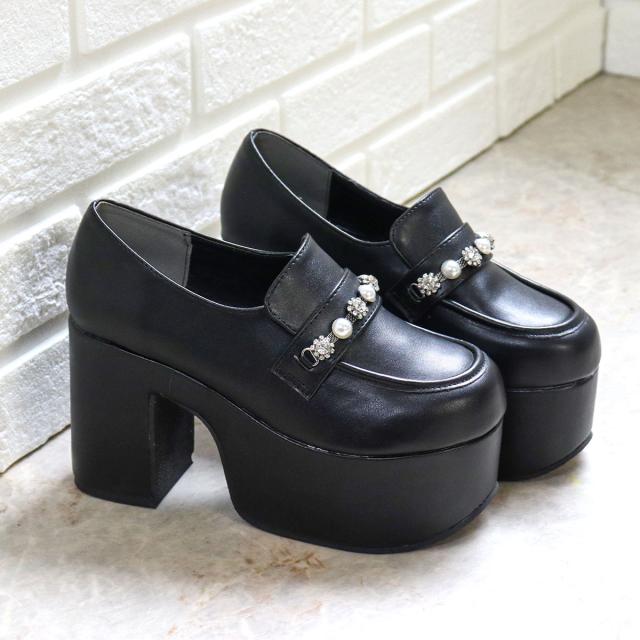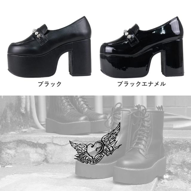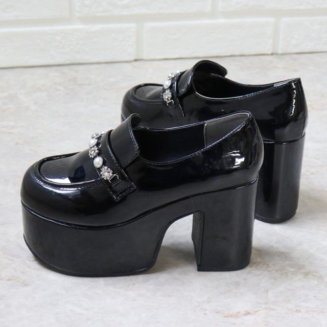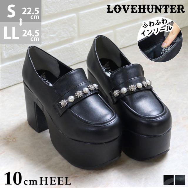 ローファー レディース パール ビジュー 飾り 厚底 10cmヒール 軽量 美脚 No.1596 22.5cm-24.5cm 黒 ブラック LOVEHUNTER ラブハンター