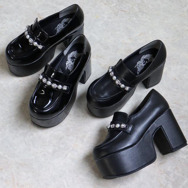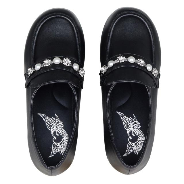 【LOVEHUNTER ラブハンター】のパール&ビジュー付き厚底ローファーパンプス。