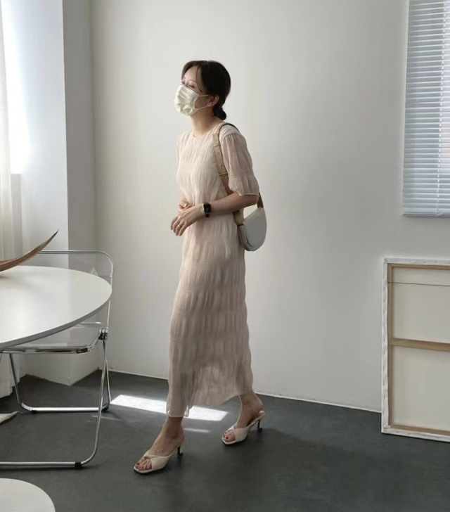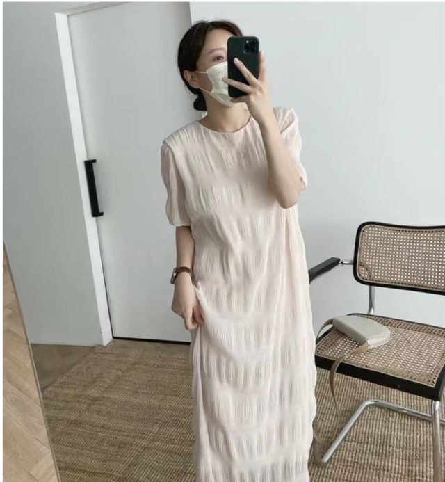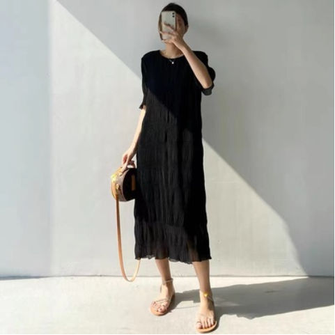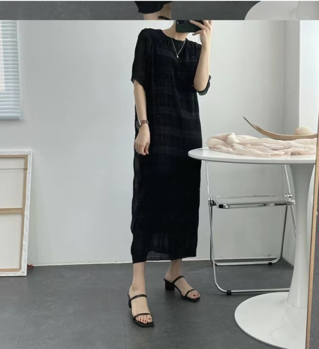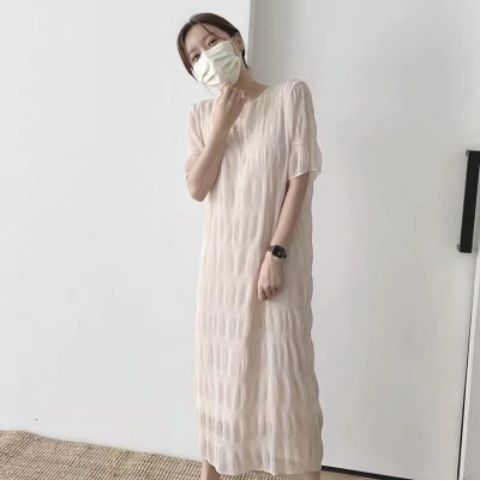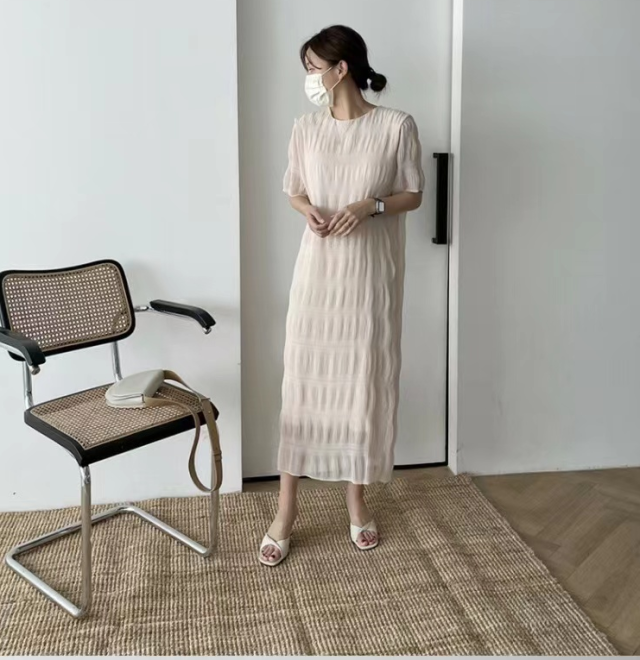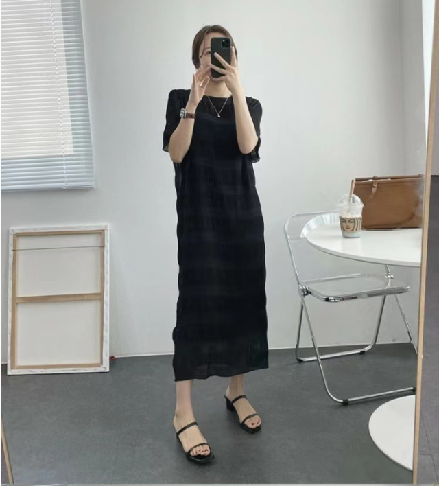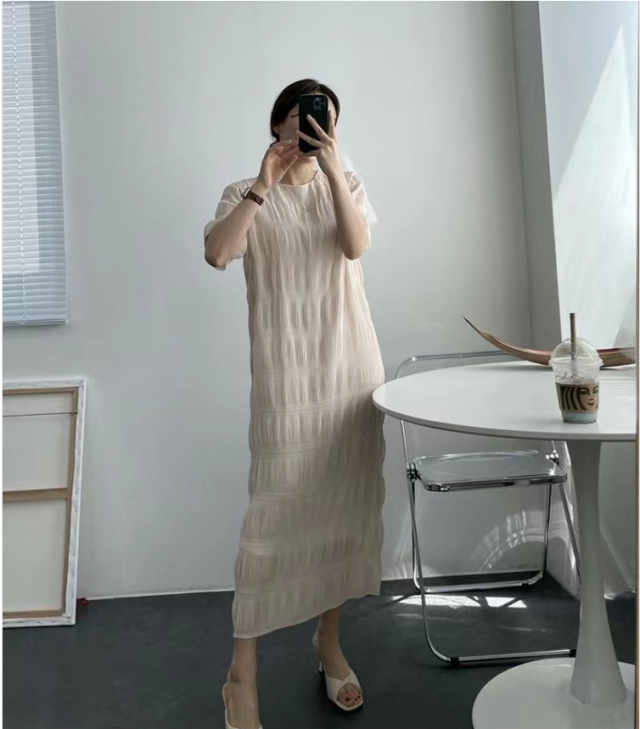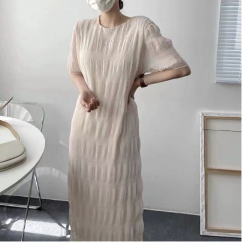 シャーリング シフォンワンピース ロング ワンピース 半袖 レディース おすすめ おしゃれ シアー 結婚式 セレモニー オフィス
