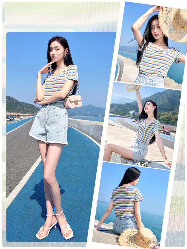 vネックtシャツ レディース 夏 半袖 カットソー ストライプ ゆったり きれいめ おしゃれ カジュアル