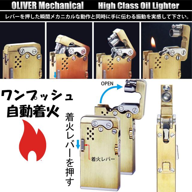 オリバー メカニカル オイルライター OLIVER High Class Oil Lighter 真鍮削り出し ワンプッシュで自動着火 OLV-MOL |