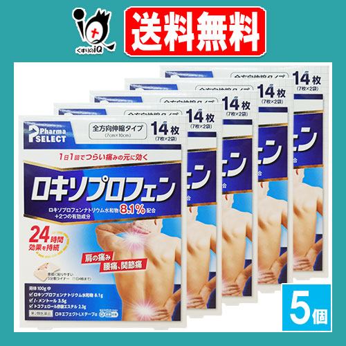 【第2類医薬品】★ロキエフェクトLXテープα 14枚入×5個セット【大石膏盛堂】肩の痛み、腰痛、関節痛に1日1回でつらい痛みのもとに効く! ロキソプロフェン テープ剤 ロキソニンジェネリック シップ 湿布 外用鎮痛消炎薬