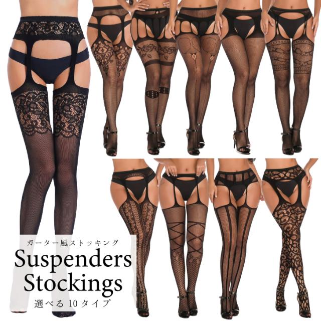 フリー サスペンダーストッキング (L-AKG-18)[★メール便OK]【 フリーサイズ レディース セクシー ランジェリー 網タイツ ガーター風ストッキング インナー 下着】