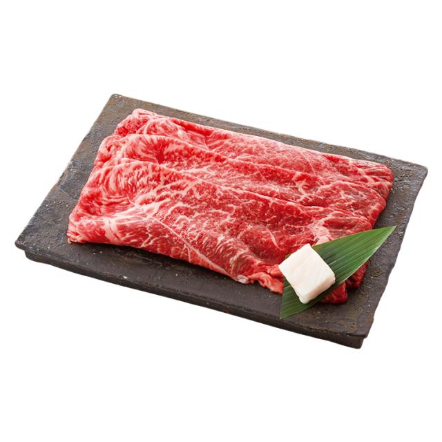 やわらかな食感の黒毛和牛をすき焼で。〈京都 モリタ屋〉が血統や脂質にこだわり、目利きした、国産黒毛和牛のモモ肉をすき焼用に仕上げました。やわらかな食感が自慢の一品です。