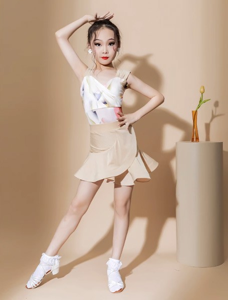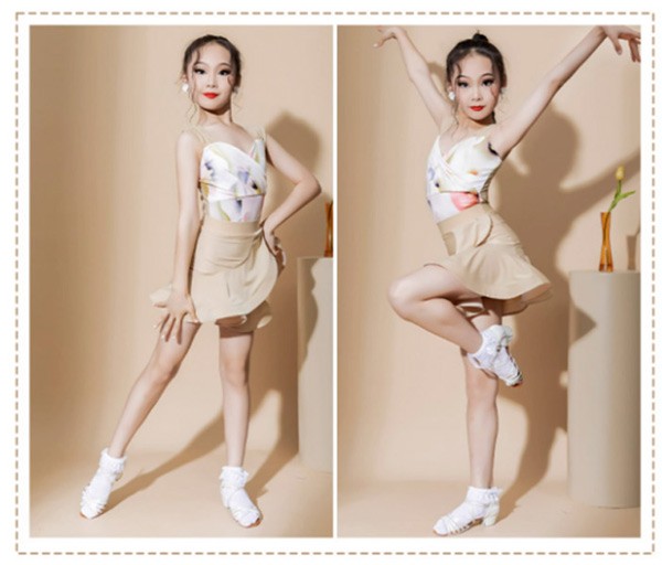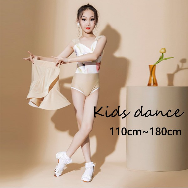 【レビュー投稿で+5%還元】ラテン ダンス衣装 キッズ ドレス 社交ダンス衣装 ミモレ丈 ダンスドレス フリンジ付 透け感 大きいサイズ 子供ダンス ダンス服 ワンピース 練習着 団体服 演出着 ステージ衣装 舞台衣装 演出用 ベージュト白 110 120 130 140 150 160 170 180