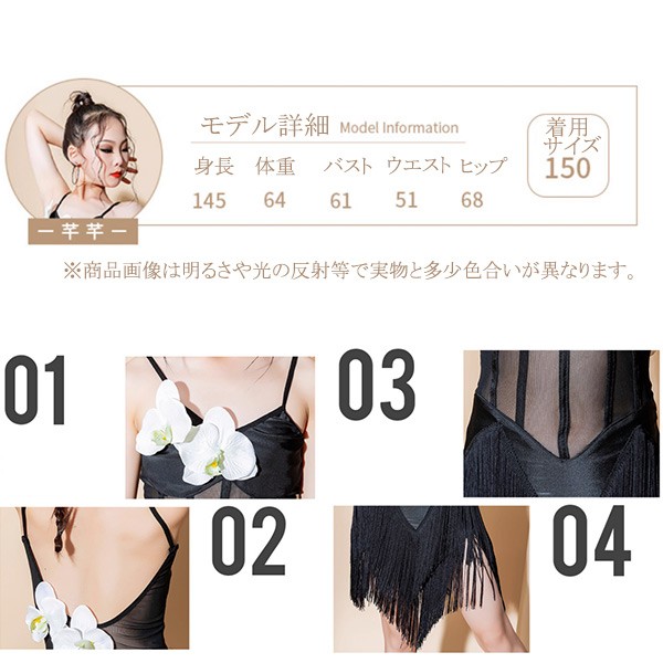 【商品名】ラテン ダンス衣装 キッズ ドレス 社交ダンス衣装 ミモレ丈 ダンスドレス フリンジ付 透け感 大きいサイズ 子供ダンス ダンス服 ワンピース 練習着 団体服 演出着 ステージ衣装 舞台衣装 演出用 ブラック黒 110 120 130 140 150 160 170 180 dm079l9