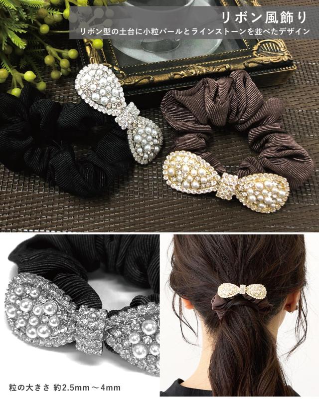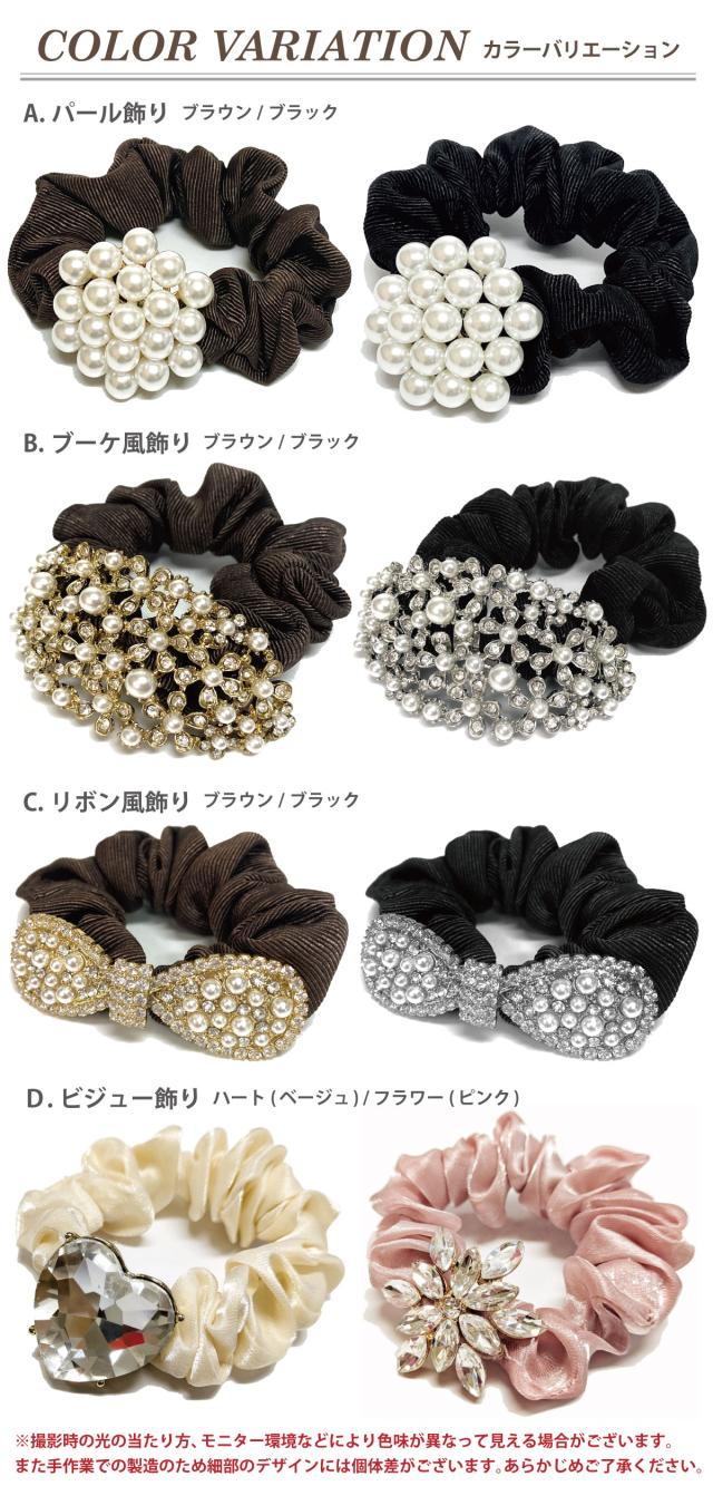 シュシュ えらべるモチーフ 髪飾り ヘアアクセサリー レディース ヘアポニー 華やか パール ラインストーン ビジュー 可愛い ha-483 大人 ヘアゴム 高級感 オフィス 女性 まとめ髪 リボン 花 ハート お洒落 プレゼント 即納【メール便送料無料】