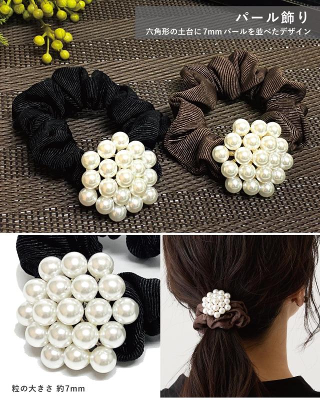 - シュシュにパールの飾りが付いていて上品で可愛らしいです。ありがとうございました。