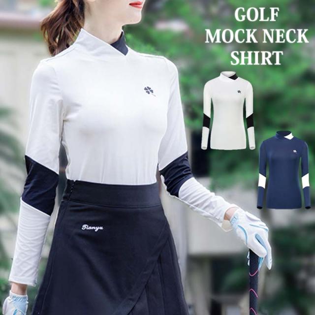 S~XL 新作 ゴルフウェア レディース ゴルフ モックネック ポロシャツ ハイネック 長袖 ストレッチ 伸縮 トップス 無地切替 カットソー おしゃれ かわいい 春 夏 秋 冬 送料無料 ゆうパケ
