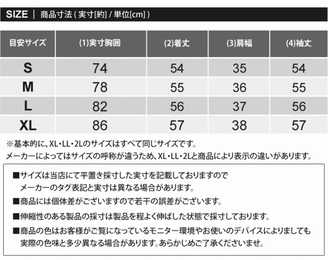 ※基本的に、XL・LL・2Lのサイズはすべて同じサイズです。