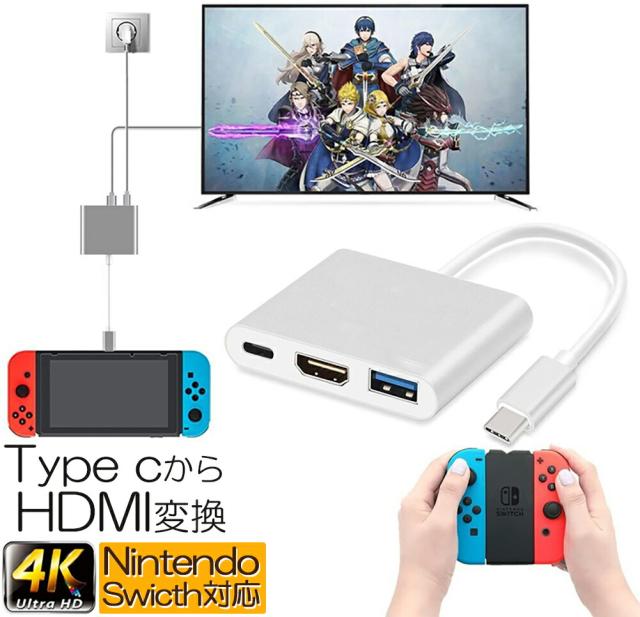 Switch 3in1 Type-C to HDMI変換アダプタ 任天堂スイッチ ドック HDMI+USB+Type-C 変換器 TV大画面 放熱 ケーブル ドック 任天堂スイッチ/Samsung Galaxy S8/S8P/MacBookに 高速充電対応 小型 持ち運びに便利 多機能変換アダプター