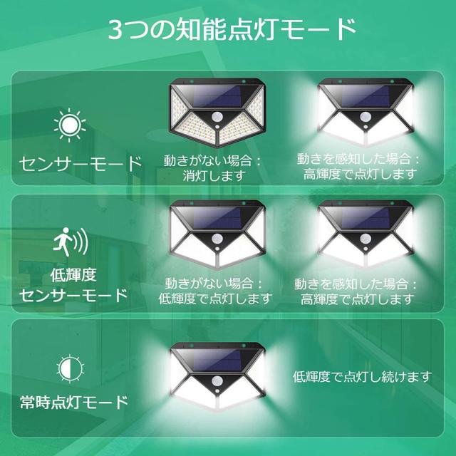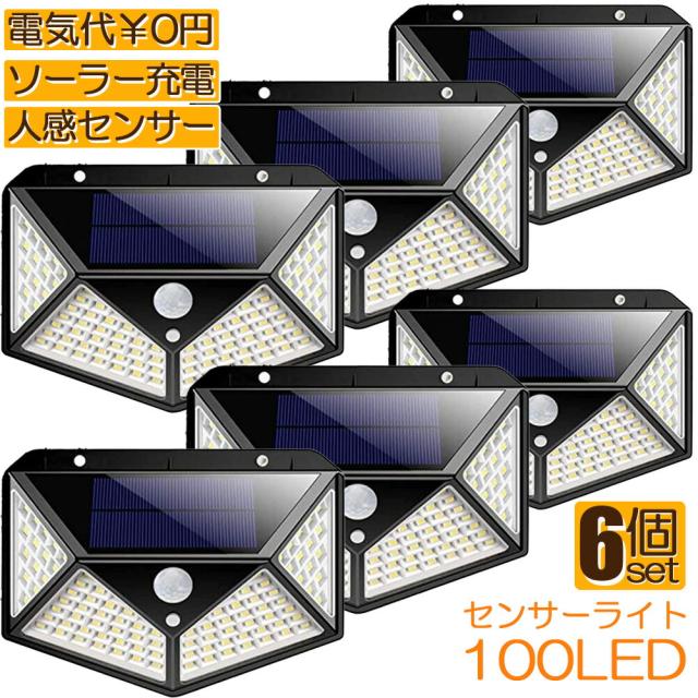 センサーライト 100LED 6個セット 屋外 ソーラーライト 4面発光 高輝度 防犯 人感 防水 屋外照明 300°照明範囲 防犯ライト 3つ知能モード 太陽光発電 庭 玄関 駐車場 通路 ガーデンライト 大活躍