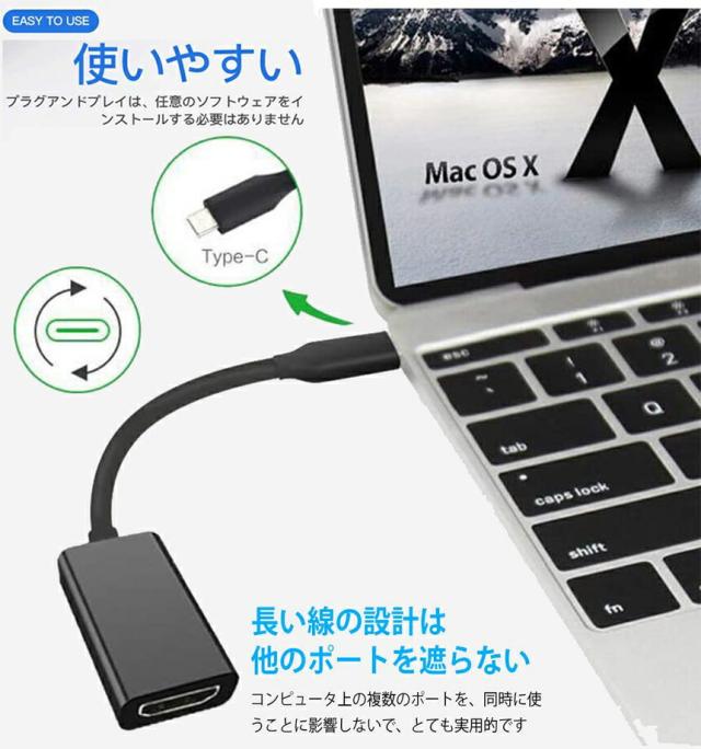 USB Type C HDMI 変換 アダプター 変換ケーブル USB-C ポート 4K(3840*2160)@60Hz/HD フル高解像度 映像出力 4K高解像 MacBook Pro Air 2019 2018 2017 HUAWEI matebook chrome book対応