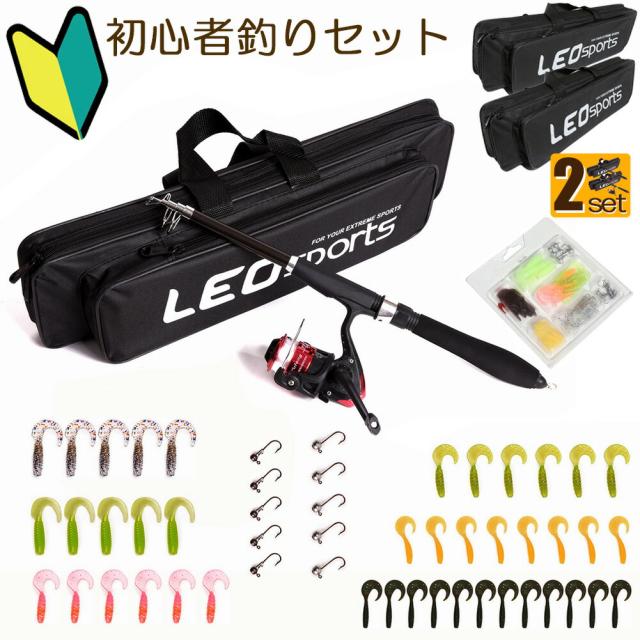 釣り 釣りセット 1.6m 2セット分ルアーセット 釣竿セット 初心者 子供 スピニングリール 海釣り 投げ釣り 釣り具 釣り竿セット 釣具セット コンパクト リール付きロッド ルアー ライン付 釣りバッグ付き