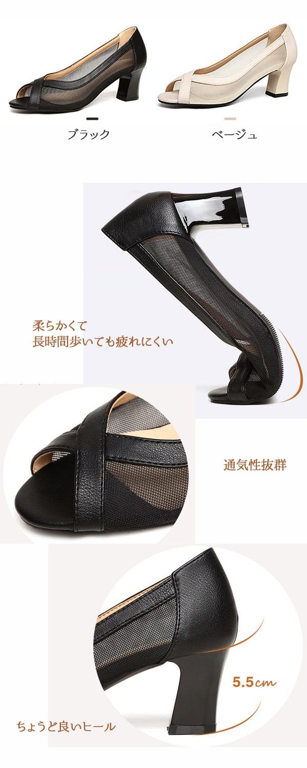 オープントゥ パンプス チャンキーヒール アーモンドトゥ レース 美脚 ヒール5.5cm 夏 パーティー 肌色 黒 二次会 フォーマル キャバ 大人 通勤 お呼ばれ 結婚式 披露宴 謝恩会 お呼ばれ 同窓会 上品 22.0 22.5 23.0 23.5 24.0 24.5 25.0