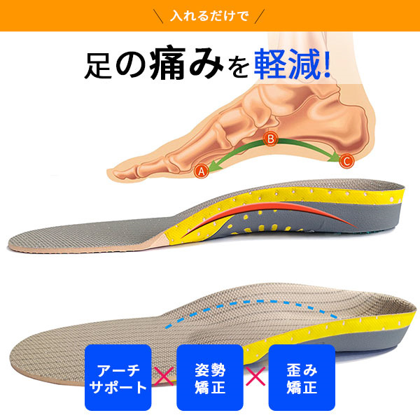 インソール アーチサポート 偏平足 土踏まず 衝撃吸収 反発 中敷き 疲れにくい 立ち仕事 ゴルフ スニーカー スポーツ ランニング靴 送料無料